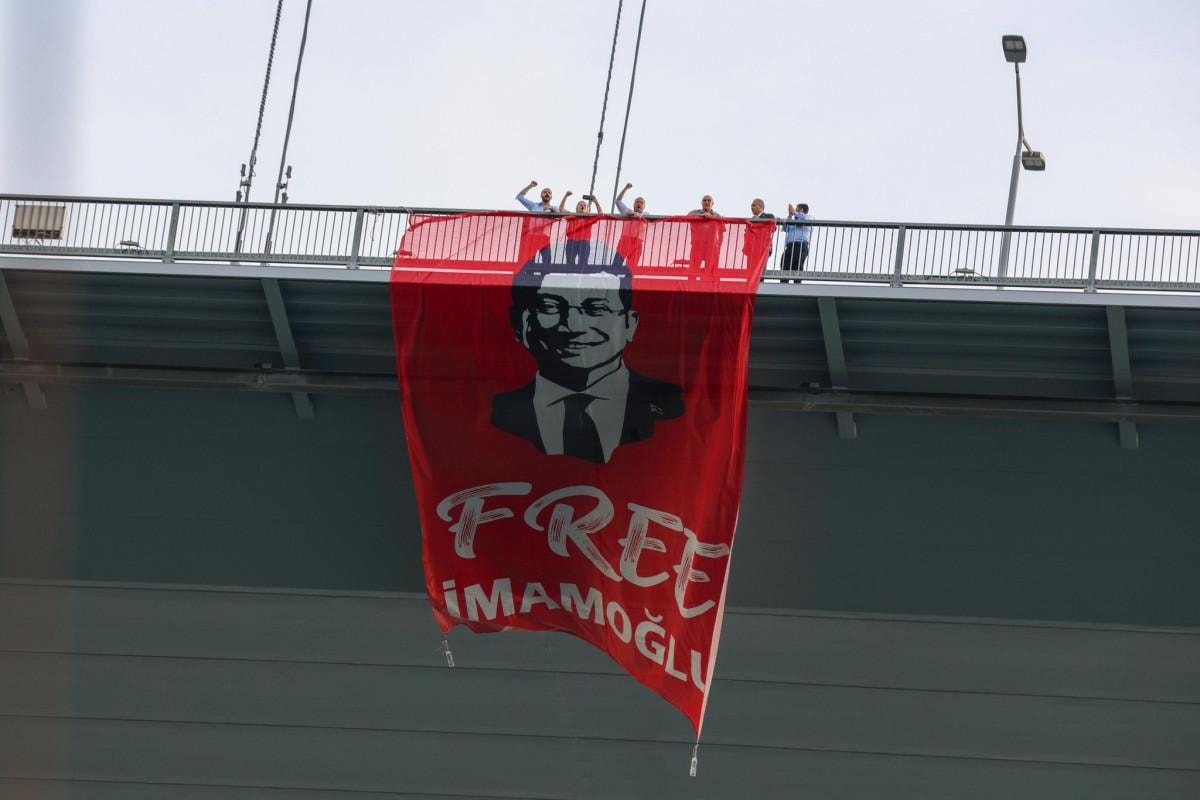 Tekne 15 Temmuz Şehitler Köprüsü altından geçtiği esnada CHP'li vekiller Suat Özçağdaş, Ali Gökçek, Mahmut Tanal, Nimet Özdemir, İlhami Özcan Aygun ve Baran Yazgan, üzerinde Türkçe "İmamoğlu'na Özgürlük" anlamına gelen "Free İmamoğlu" yazan pankart astı.
