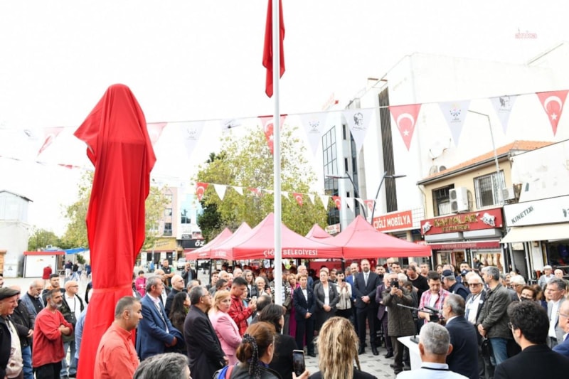 Törene Çiğli Belediye Başkanı Utku Gümrükçü, heykelin akıbeti için yıllarca mücadele eden Çiğlili öğretmen Süleyman Dinçer’in çocukları, meclis üyeleri, muhtarlar ve vatandaşlar katılım gösterdi.