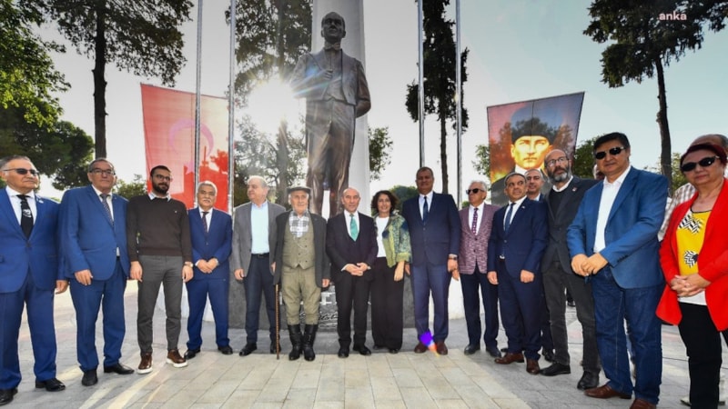 Mustafa Toygar tarafından yapılan heykelin açılışına, İzmir Büyükşehir Belediye Başkanı Tunç Soyer ve eşi Neptün Soyer'in yanı sıra CHP'li isimler de katıldı.