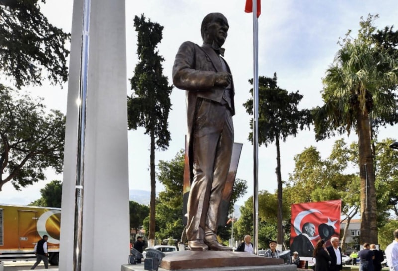 İzmir Büyükşehir Belediyesi tarafından yenilenen Tire’deki Cumhuriyet Meydanı'na yerleştirilen Atatürk heykeli, Türkiye Cumhuriyeti'nin 100'üncü kuruluş yıl dönümü kutlamaları kapsamında açıldı.