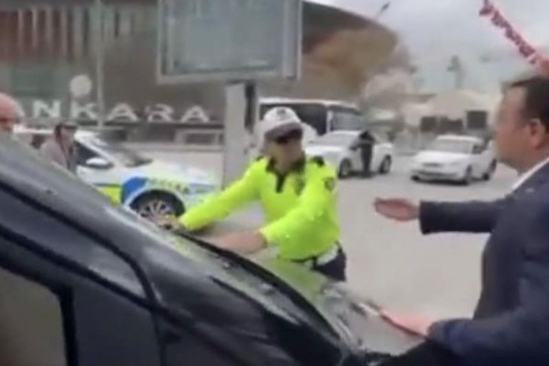 Ankara'nın Altındağ ilçesinde bulunan Talatpaşa Bulvarı üzerinde görev yapan polis memuru, CHP Milletvekili Adnan Beker'e ait aracı, Cumhuriyet Caddesi'nin trafiğe kapalı olması nedeniyle durdurdu.