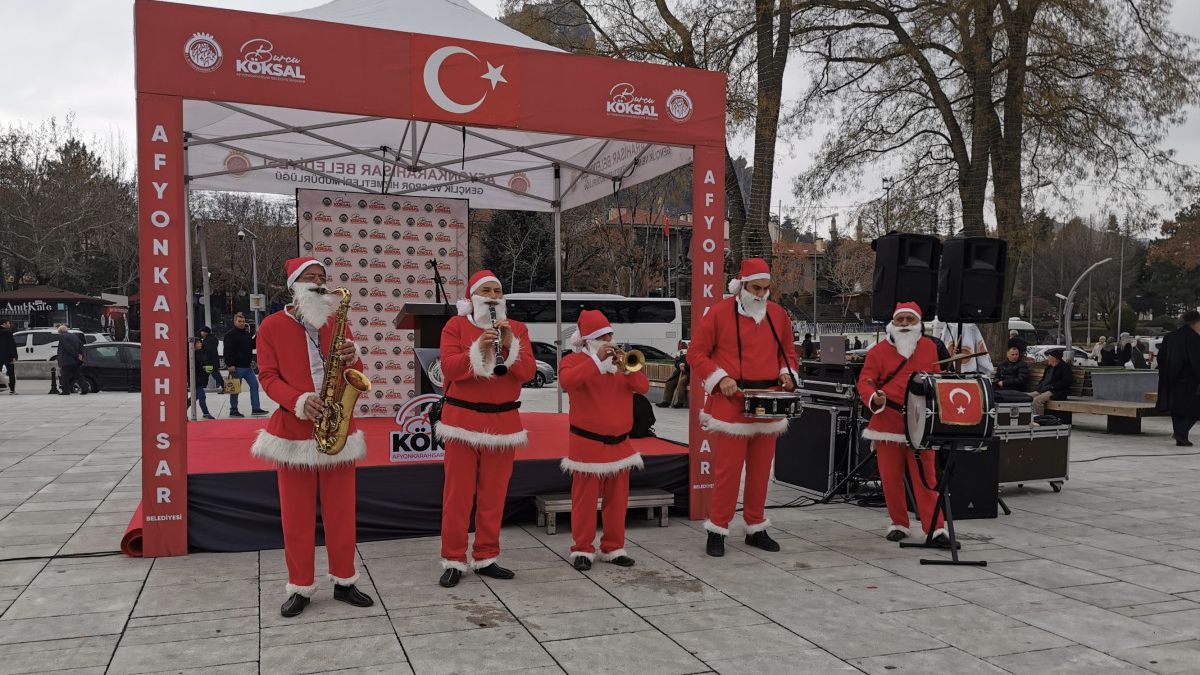 Belediye tarafından düzenlenen etkinlikte Noel Baba kostümlü müzisyenler Zafer Meydanı’nda ilimiz halkına müzik resitali sundu.