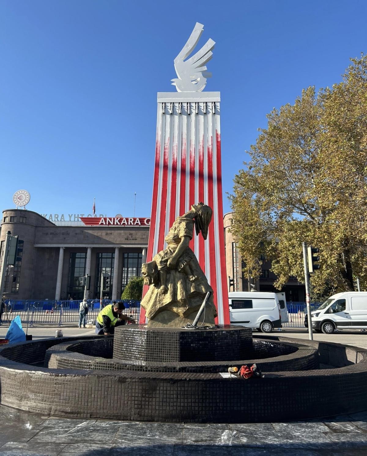7 metre yüksekliğindeki 10 Ekim Anıtı, Ankara Gar meydanına yerleştirildi.
