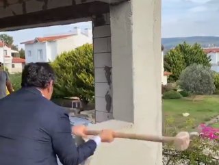 Bu kararı fırsata çeviren Aykut Erdoğdu, kameralar kayıttayken eline aldığı balyozla kaçak yapıyı yıkmaya başladı.