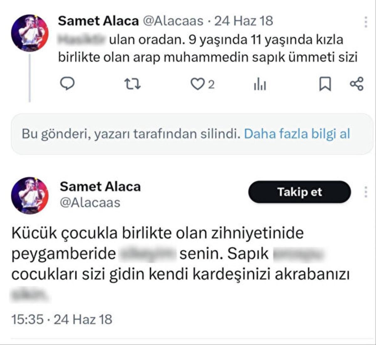 Dini değerlerimizi ve peygamberimizi hedef alan Alaca, şu çirkin ifadeleri kullandı: