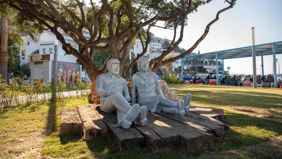 5 Kasım 2006’da hayatını kaybeden eski Başbakan Bülent Ecevit’in 16’ncı ölüm yıl dönümünde Kuşadası Belediyesi, Ecevit çiftinin bir fotoğraf karesini heykel haline getirdi.