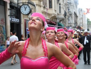 Tünelden hareket eden, ülkelerin kendine özgün danslarının ve şarkılarının sergilendiği kortej Galatasaray Lisesi önünde yapılan basın açıklaması ile son buldu.