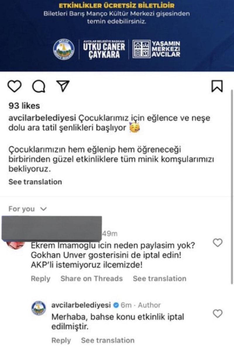 Ekrem İmamoğlu'nun tutuklanmasına tepki göstermediği için sosyal medya kullanıcıları tarafından hedef gösterilen sosyal medya fenomeni komedyen Gökhan Ünver'in planlanmış gösterileri CHP'li Avcılar, Küçükçekmece ve Bodrum belediyeleri tarafından iptal edildi.