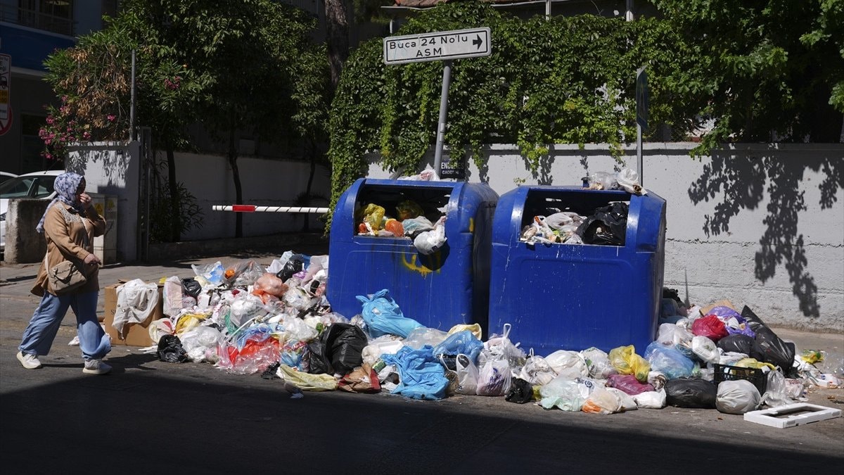 Grev nedeniyle toplanmayan çöpler dün İzmir Büyükşehir Belediyesi ekipleri tarafından toplanırken, Buca Belediye Başkanı Görkem Duman da sahaya inip çöp topladı.