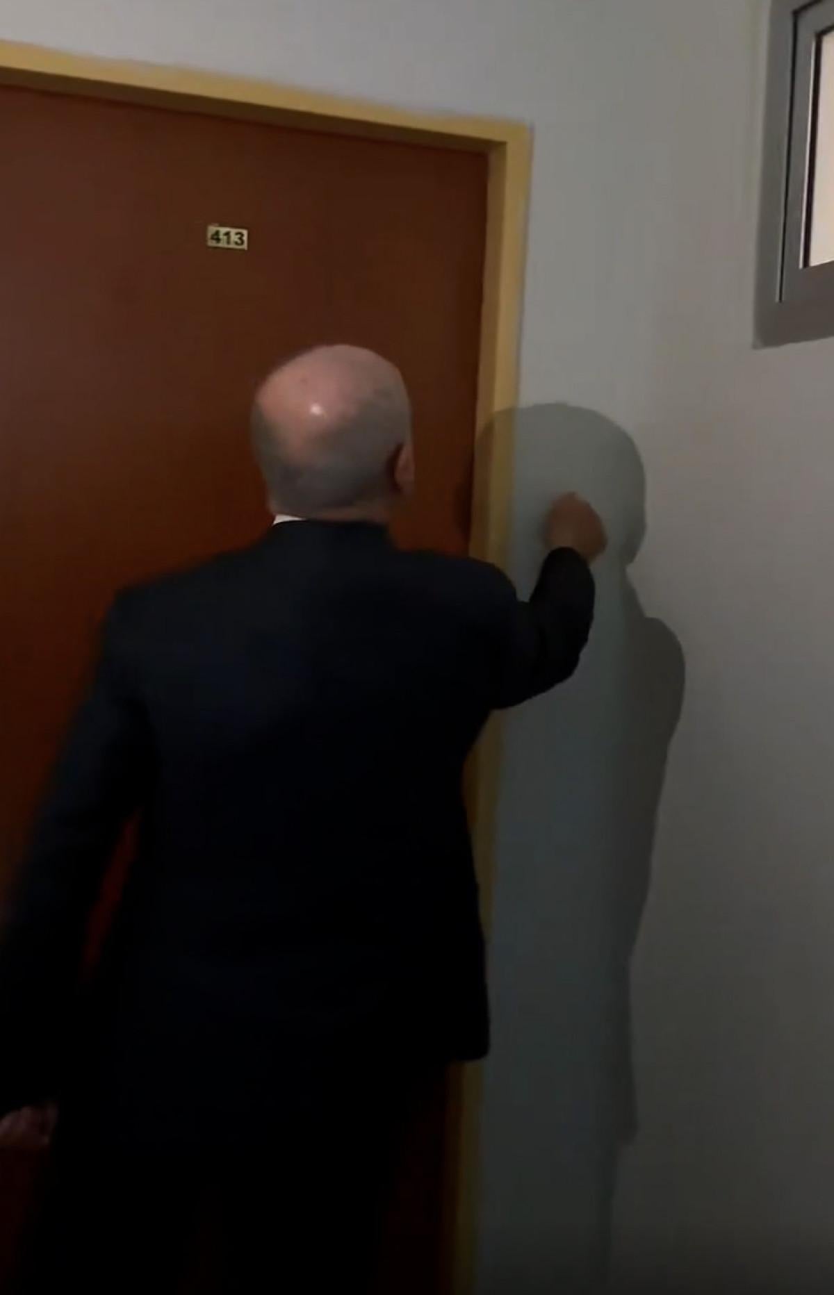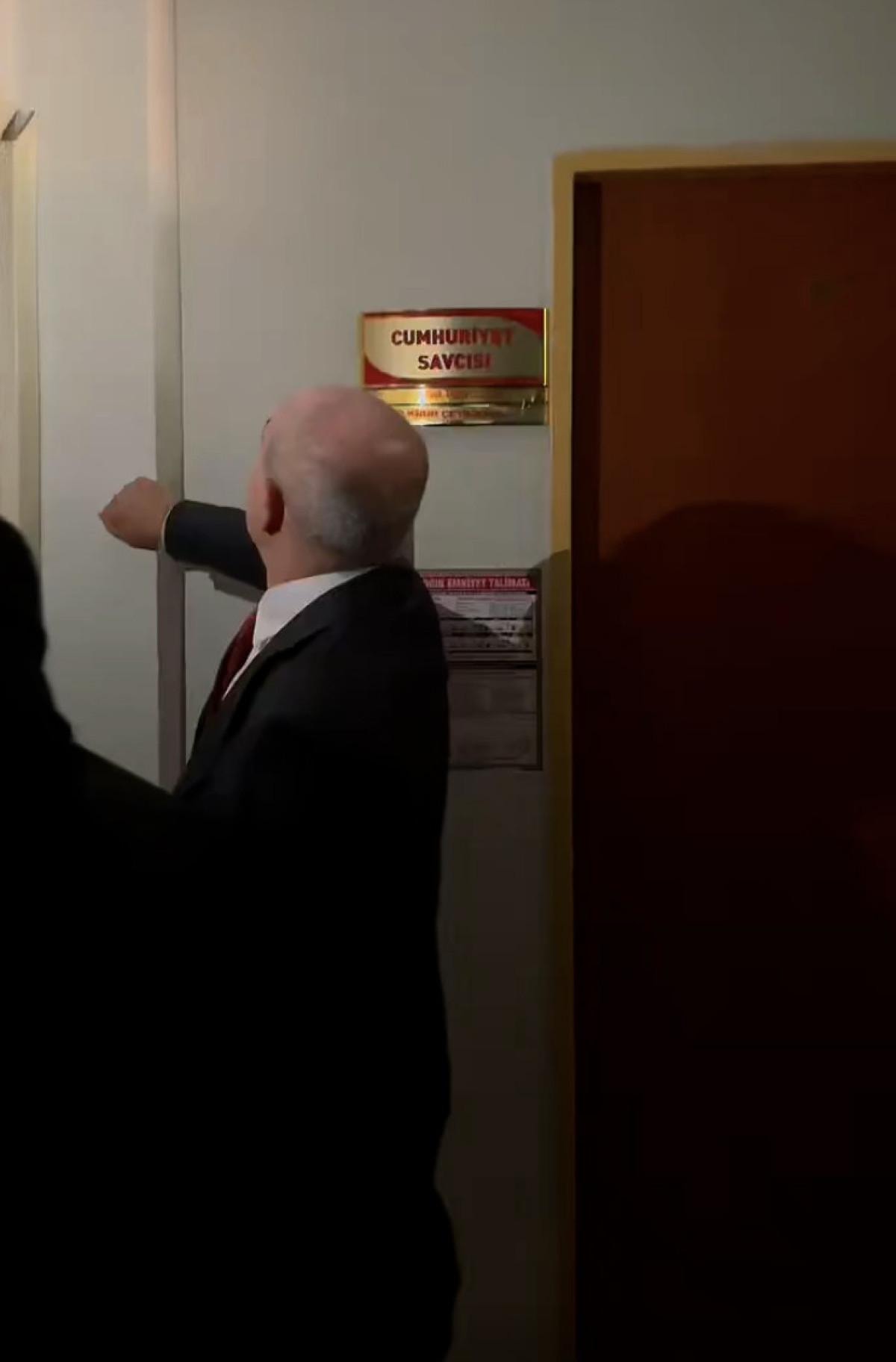 Elindeki fenerle belediyede gezen Akgün, duvarları kontrol ettikten sonra dışarı çıktı.