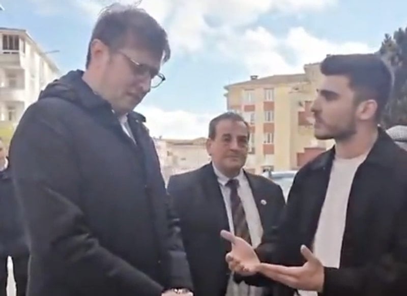 Bu esnada yanına yaklaşan bir genç, Vahap Akay'a bozuk yolların çözümüyle ilgili önerilerde bulunmak istedi.