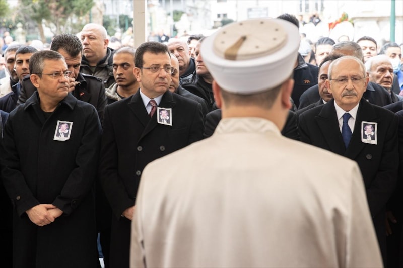 Özgür Özel'in de katıldığı cenaze töreninde, Ekrem İmamoğlu ve eski CHP Genel Başkanı Kemal Kılıçdaroğlu da ön sırada saf tuttu.