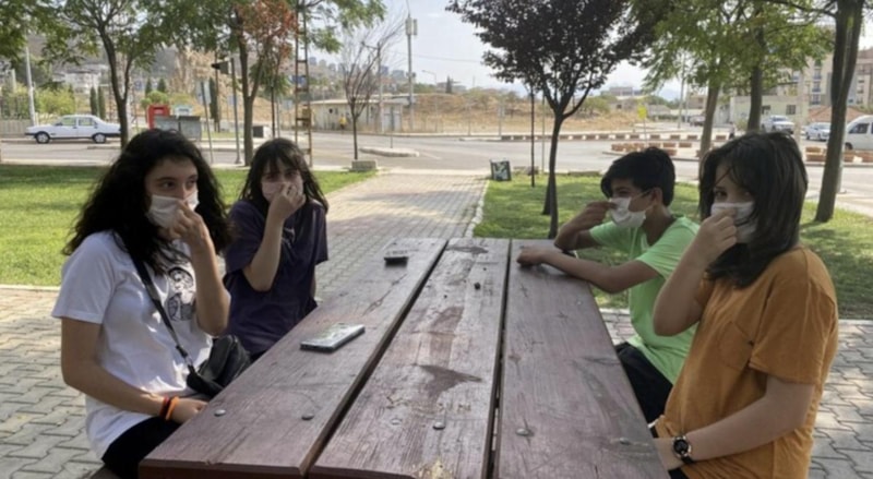 Vatandaşlar İzmir'de koronavirüs pandemisinden önce de kötü kokudan korunmak için maske kullanmakta.