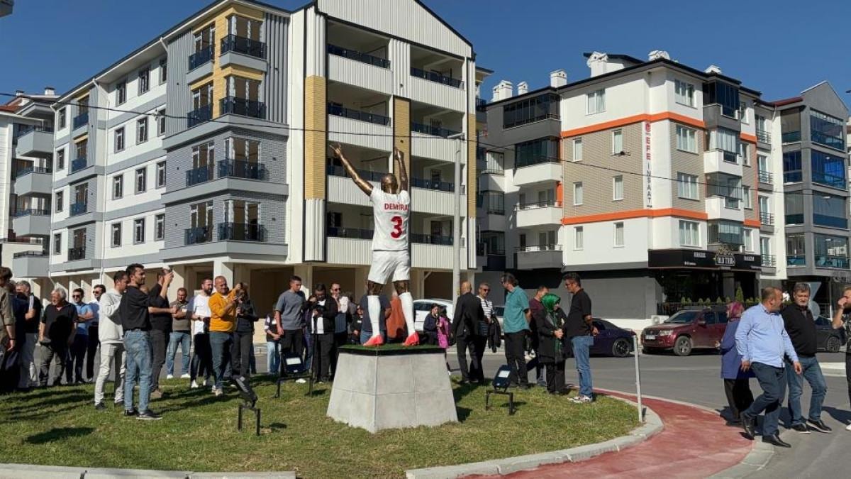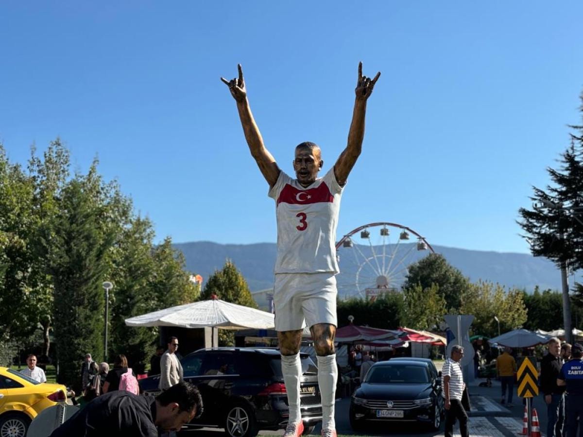 Ünlü futbolcunun bozkurt selamı veren heykeli törenle açıldı.