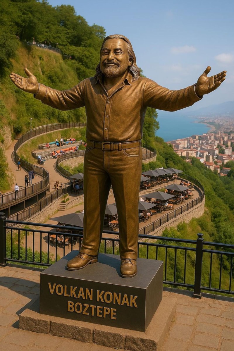 CHP'li Ortahisar Belediyesi, Boztepe Volkan Konak Seyir Terası’na Volkan Konak'ın heykelini yapacağını duyurdu. Heykelin görseli de belediye hesabından paylaşıldı.