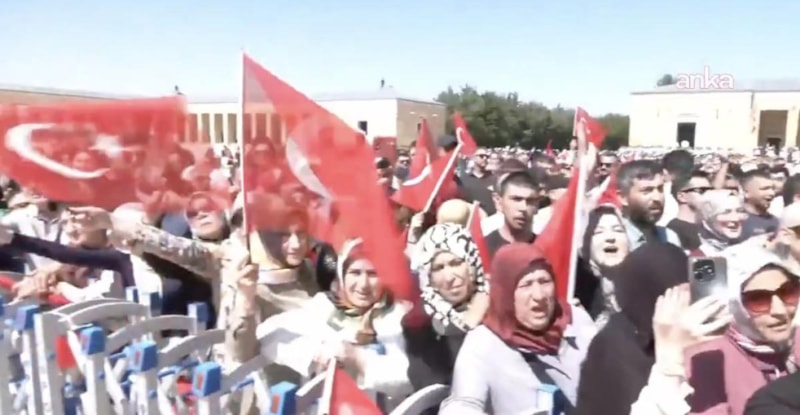 O sırada da Anıtkabir'e gelen vatandaşlar, Cumhurbaşkanı Erdoğan'ı gördüklerinde sevgilerini dile getirmek için slogan attı.