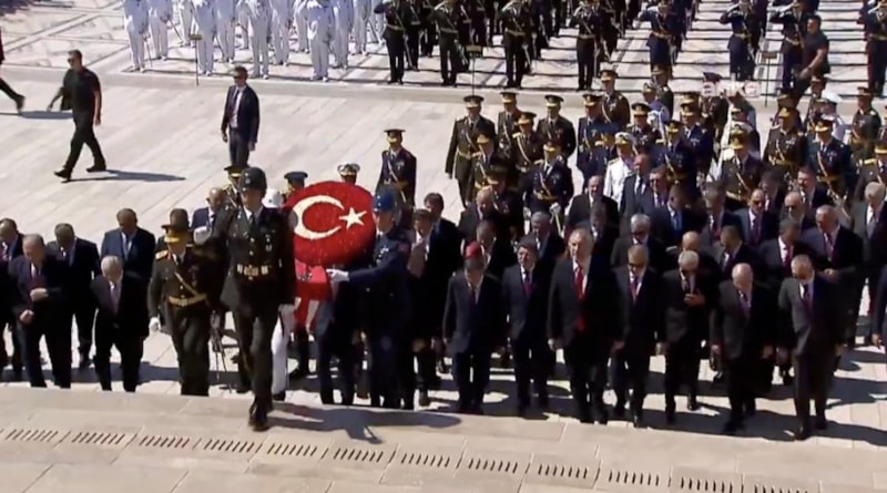 Cumhurbaşkanı Recep Tayyip Erdoğan başkanlığındaki devlet erkanı, 30 Ağustos Zafer Bayramı ve Türk Silahlı Kuvvetleri Günü dolayısıyla Anıtkabir'e ziyarette bulundu.