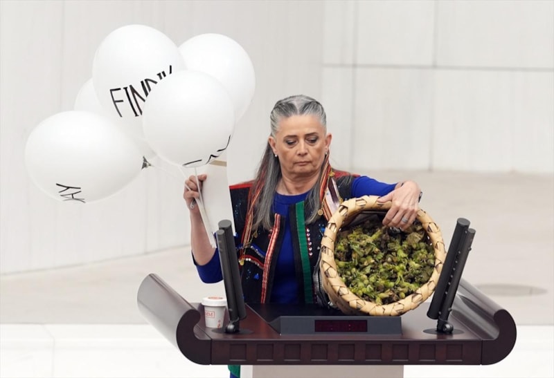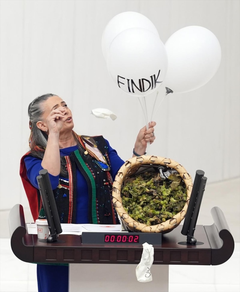 CHP Trabzon Milletvekili Sibel Suiçmez, TBMM'de yaptığı konuşmada fındık sorununu dile getirirken kürsüye bölgesinde yetişen ürünlerin isimlerinin yazılı olduğu balon demetiyle çıktı. Suiçmez eleştirilerinin ardından balonları tek tek iğne ile patlattı.