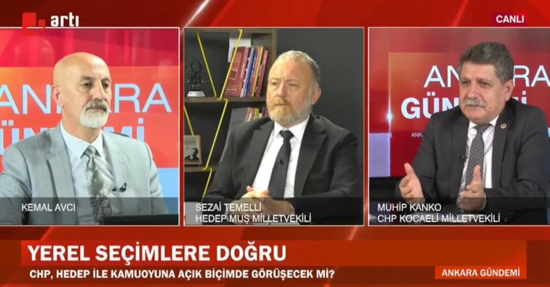 CHP Kocaeli Milletvekili Muhip Kanko, Artı Tv'de yayınlanan bir programa HEDEP'li Sezai Temelli ile birlikte katıldı.