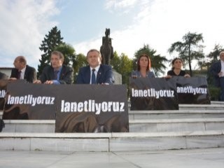 Oturma eylemine ilişkin açıklama yapan CHP Bursa İl Başkanı Zafer Yıldız, "Sözün bittiği yerdeyiz. Terörün her türlüsünü lanetliyoruz. Bugün barışa atılan bomba içimizi yaktı. Bunu yapanları lanetliyoruz ve sessiz bir şekilde eylem yapıyoruz" dedi.