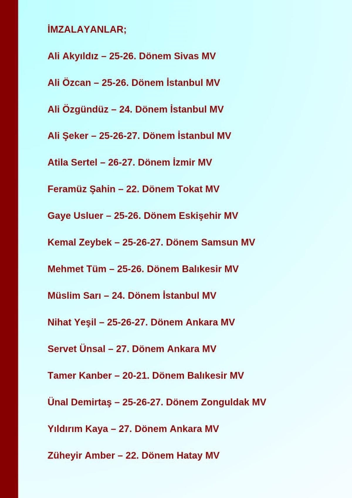 Özgür Özel'e yazılan mektubu imzalayanlar şu şekilde;