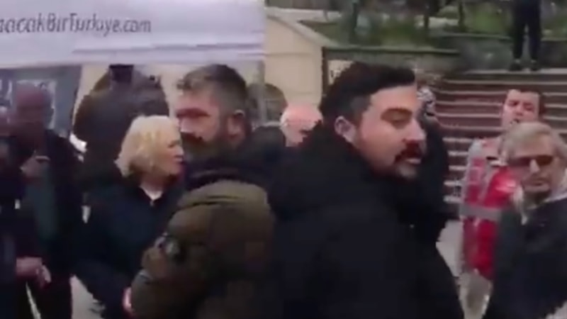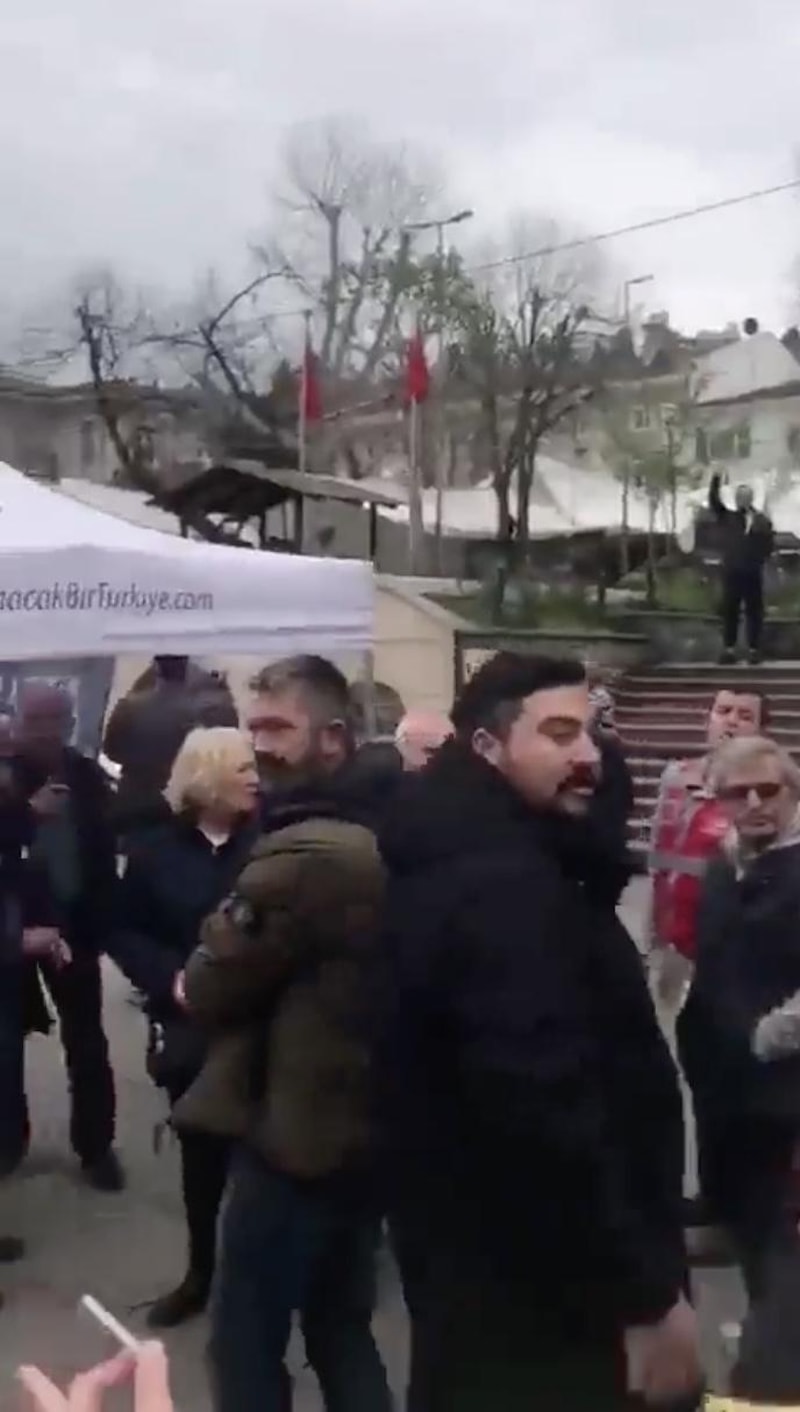 CHP üyesi bir grup, İstanbul Beykoz'da aynı yerde stant açmak isteyen Memleket Partisi üyeleri ile tartıştı.