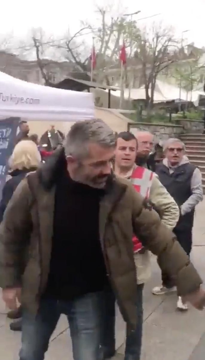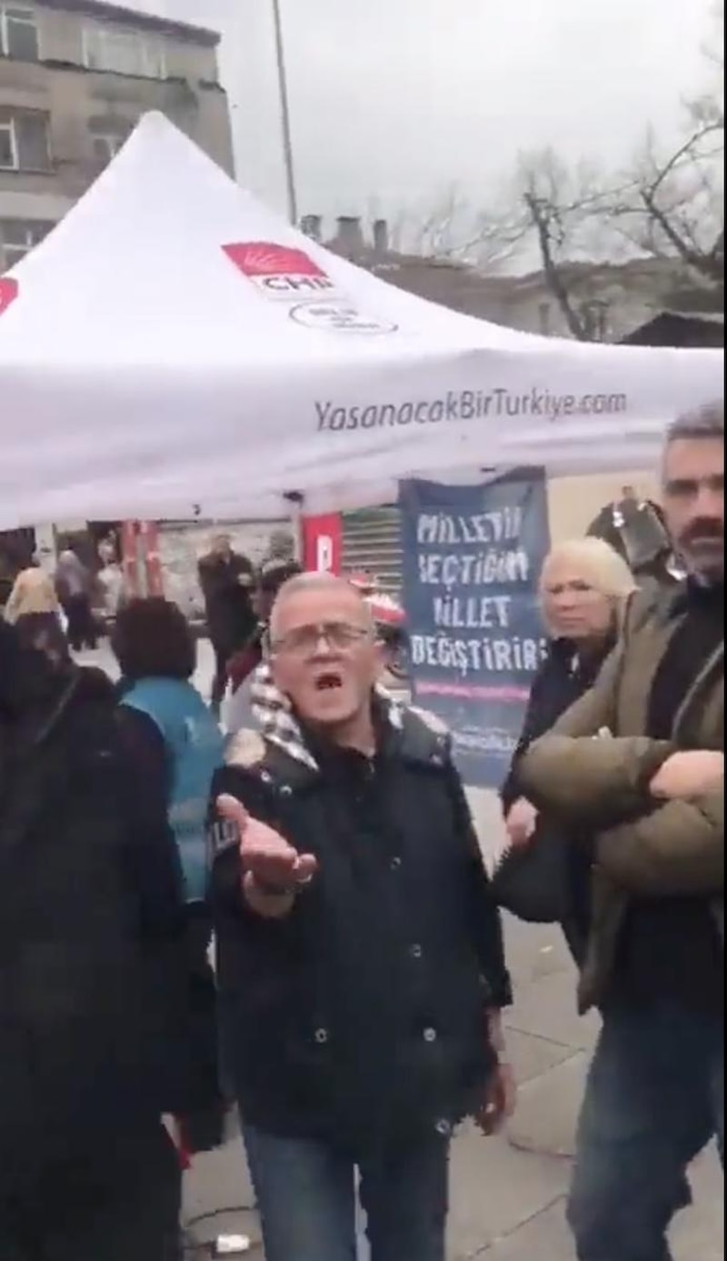 CHP'lilerin, stant açmalarına izin vermediği Memleket Partili grup o anları videoya çekmek istedi.