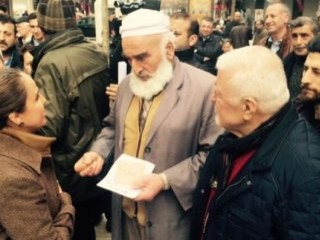 Muhafazakar görünümlü kişilerle özellikle ilgilenen CHP'liler, 16 Nisan referandumu için HAYIR oyu istedi.