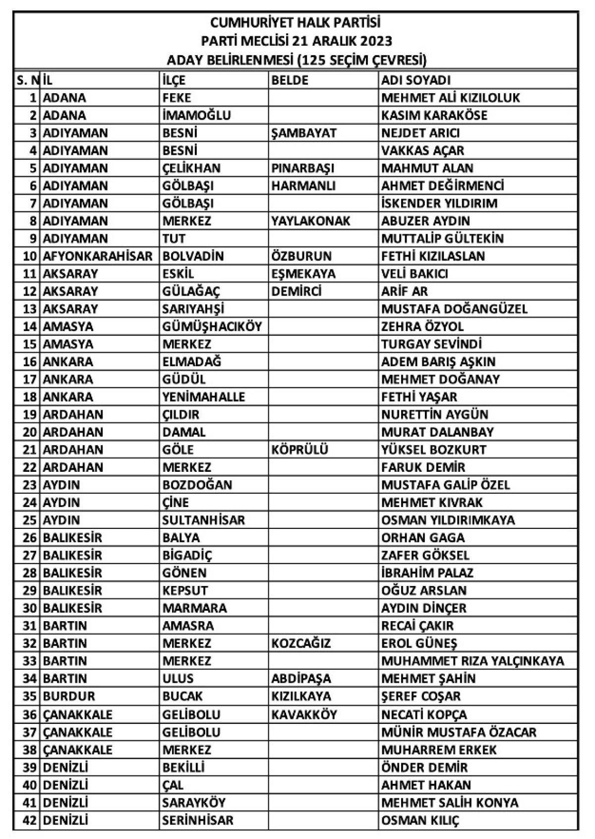 Toplantı sonrası kameraların karşısına geçen CHP Sözcüsü Deniz Yücel'in açıkladığı adaylar şöyle: