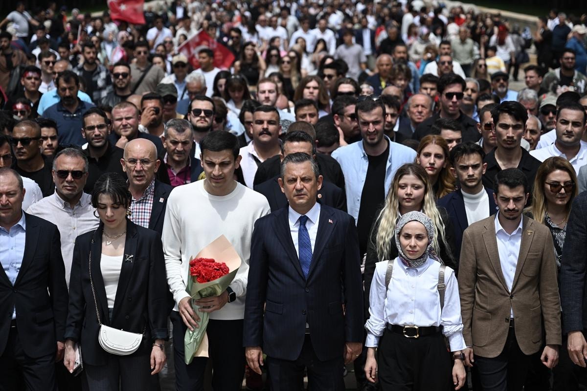 Özel, gençlerle birlikte Anıtkabir'e yürüdü. Mesajında Özel, CHP'yi iktidara taşıma sözü verdi.