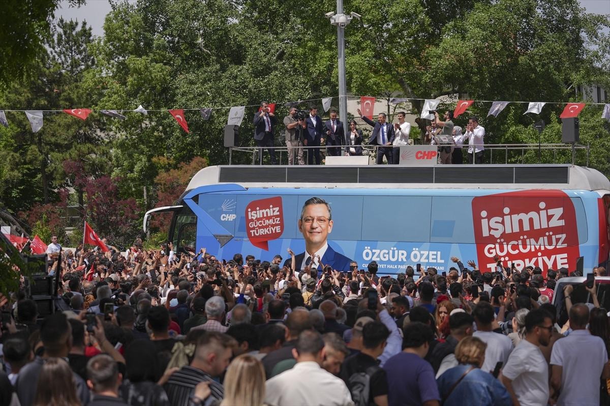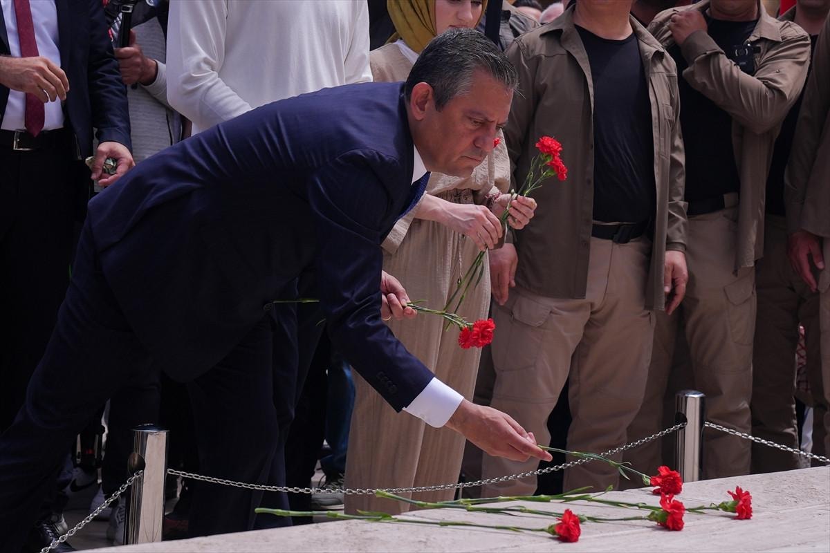 Anıtkabir girişinde parti otobüsünün üzerinden yürüyüşe katılanlara hitap eden Özel, 31 Mart Mahalli İdareler Genel Seçimleri'nde birinci parti olmanın verdiği gururla Gazi Mustafa Kemal Atatürk'ün huzuruna çıktıklarını kaydetti.
