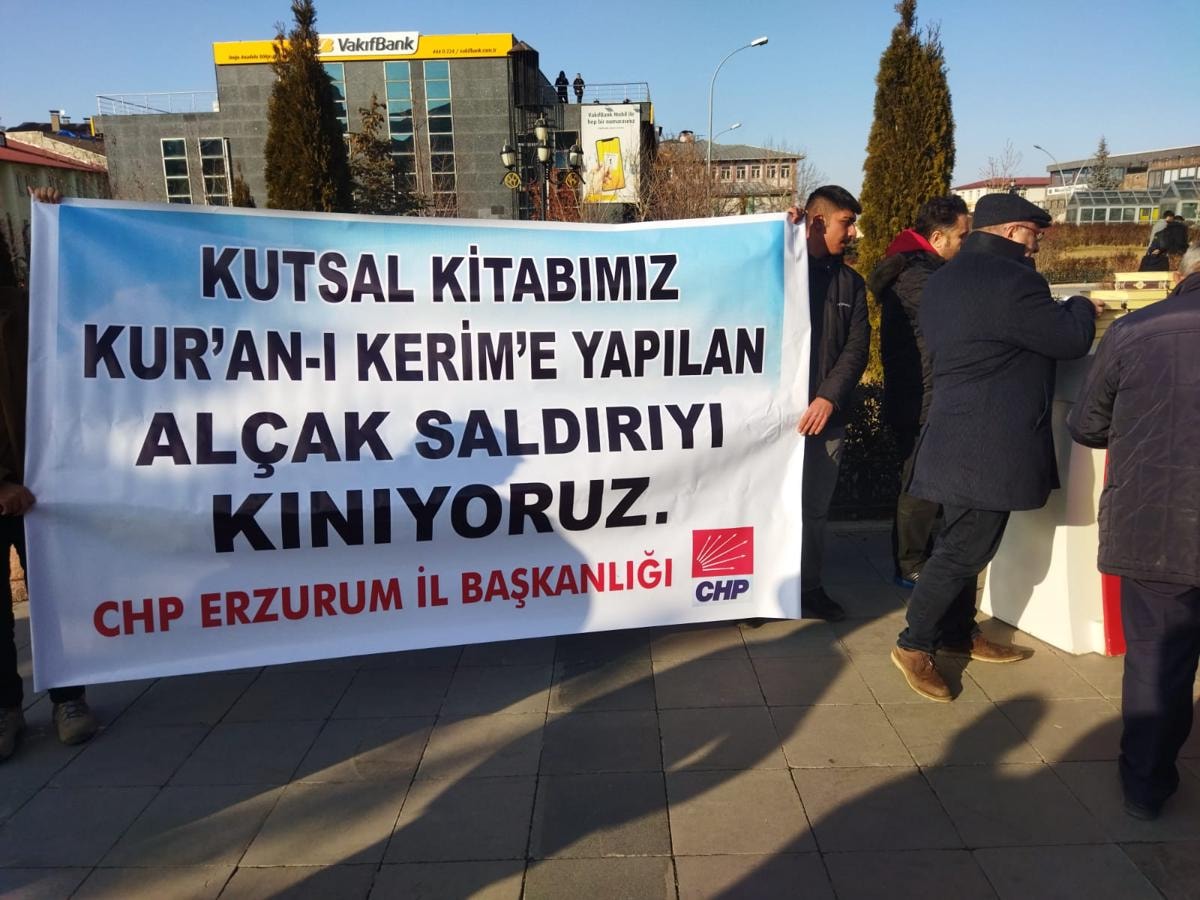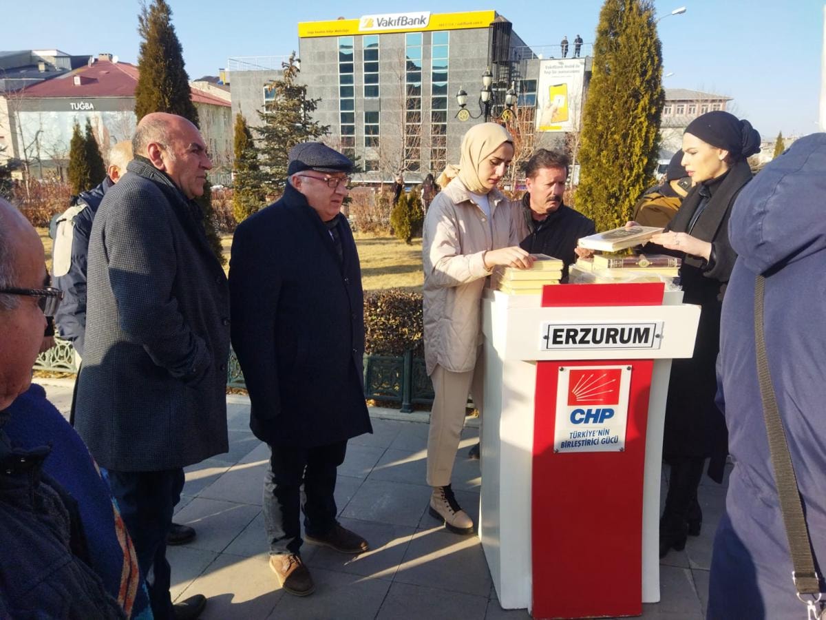 CHP Erzurum İl Başkanı Suat Dülger, Lala Paşa Cami önünde vatandaşlara Kur’an dağıttı.