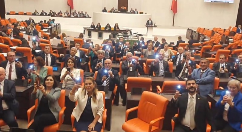 CHP'li vekiller TBMM'de telefon ışıklarını açıp kapadı