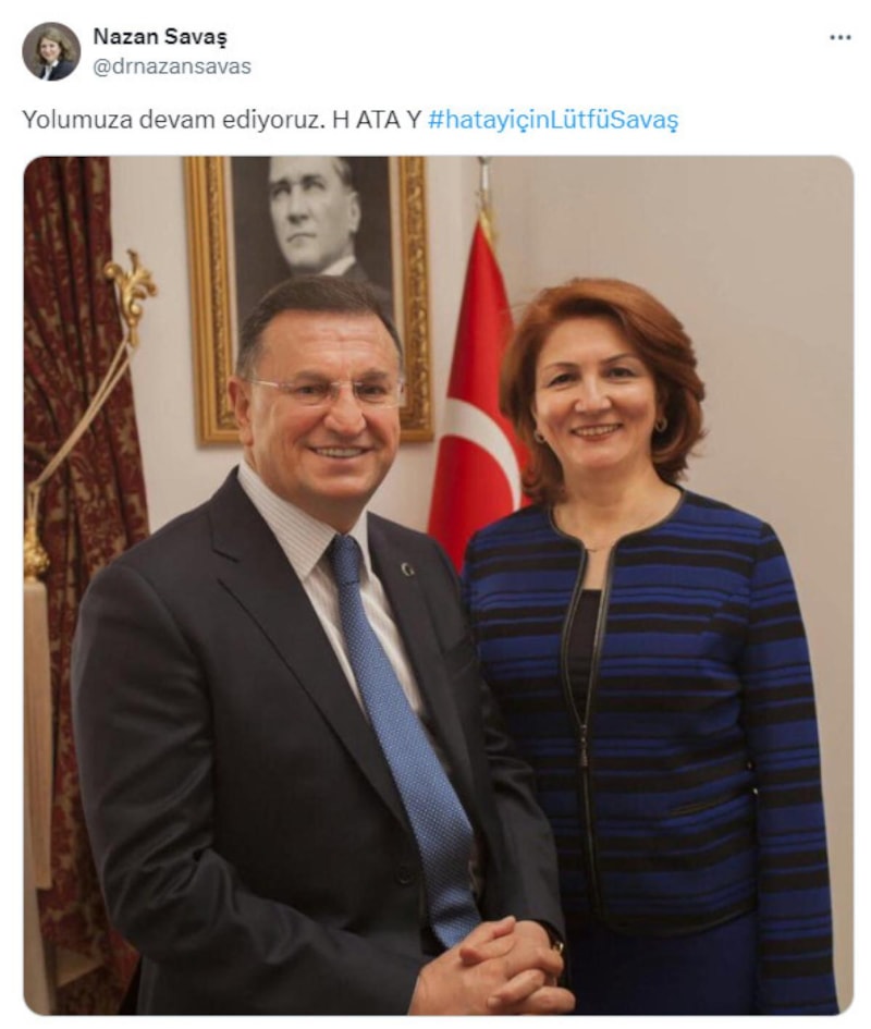 Hataylıların tepki gösterdiği Lütfü Savaş kararının ardından CHP'nin geri adım atmasının üzerine Savaş'ın eşi, sosyal medya hesabından yaptığı paylaşımda Atatürk'lü bir göndermede bulundu.
