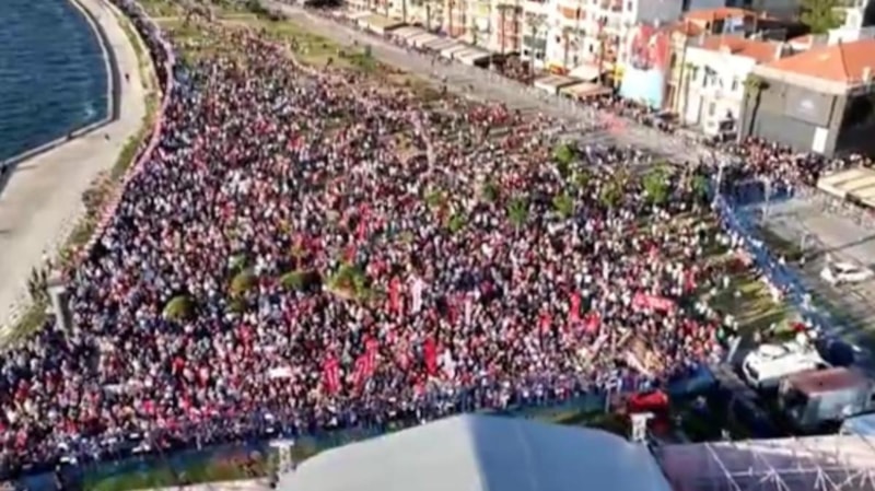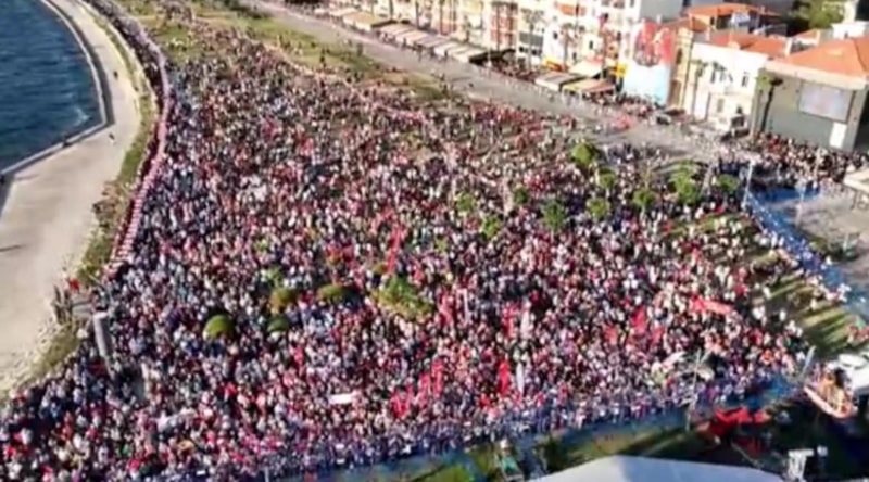 CHP, İBB'ye yönelik soruşturmalar kapsamında Ekrem İmamoğlu ve çalışma arkadaşlarının tutuklanmasının ardından planladığı haftalık mitinglerine İzmir'de devam etti.