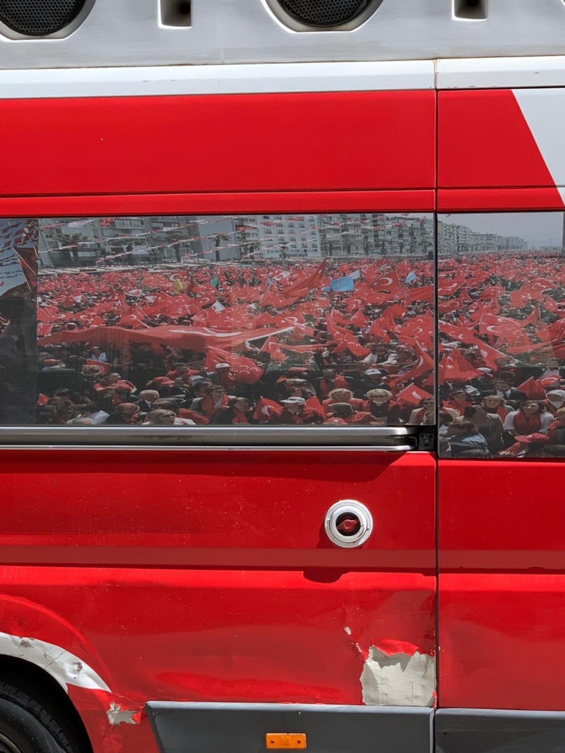 Partiler sahaya inerek vatandaşlarla bir araya gelmeye devam ederken, CHP'nin seçim minibüsünde yer alan fotoğrafın MHP mitingindeki kalabalığa ait olduğu ortaya çıktı.