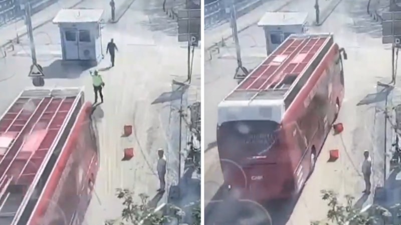 Trafik polisi, olaydan otobüsün sağına kaçarak yara almadan kurtulurken başlatılan soruşturma kapsamında şoför gözaltına alındı.