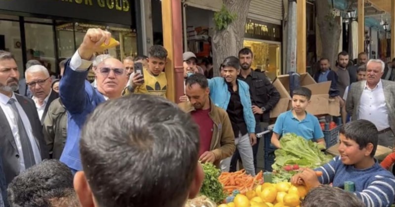 CHP'li Tanal, elindeki limonu sıkarken, vatandaşlara AK Parti'ye oy vermeme çağrısı yaptı.
