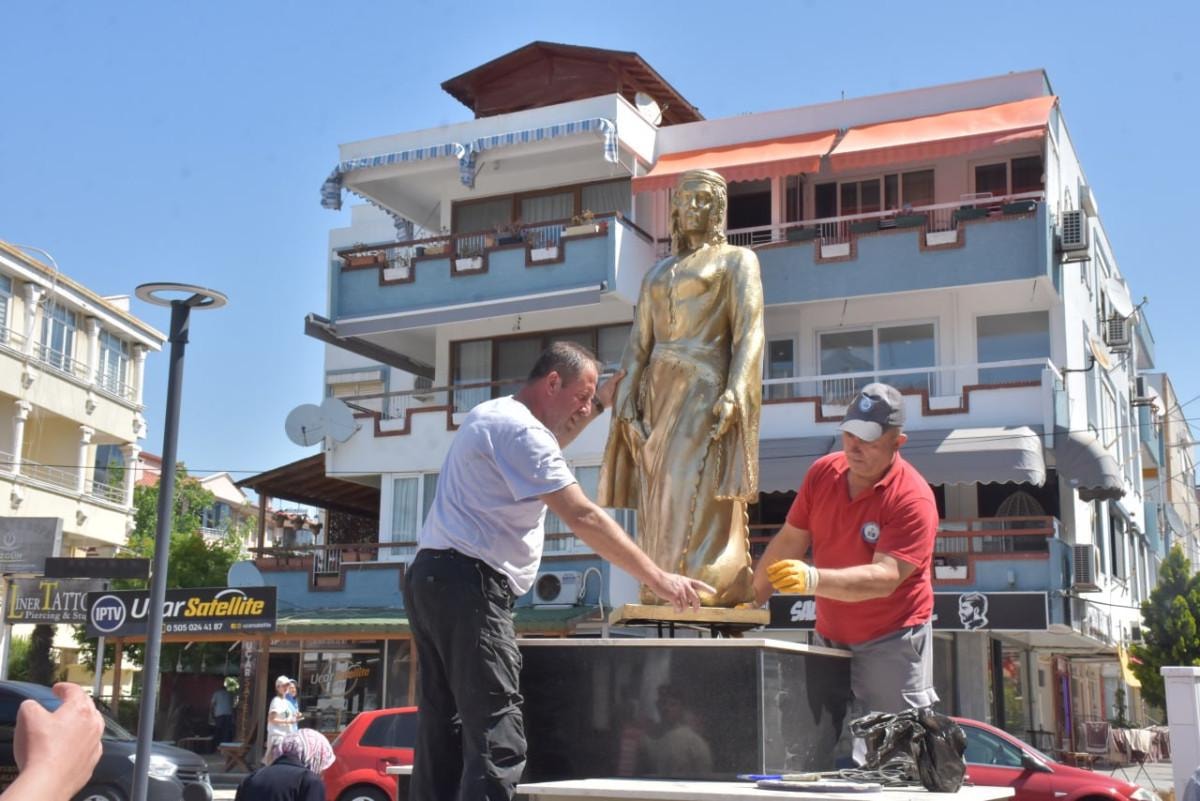 CHP'nin ilçe yönetimi, meydana Sarıkız heykeli yaptırdı.