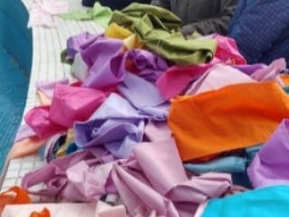Referandum çalışmaları kapsamında bir araya gelen CHP'liler, çaputlara HAYIR sloganları yazdı.