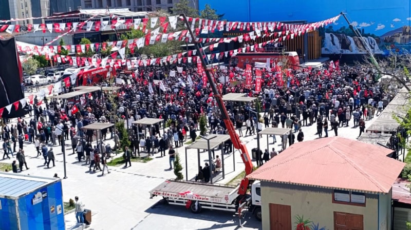 Van Kent Meydanı'nda gerçekleştirilen mitingde boş alanlar göze çarparken, çevre illerden getirilen partililer de düşük katılımı telafi edemedi.