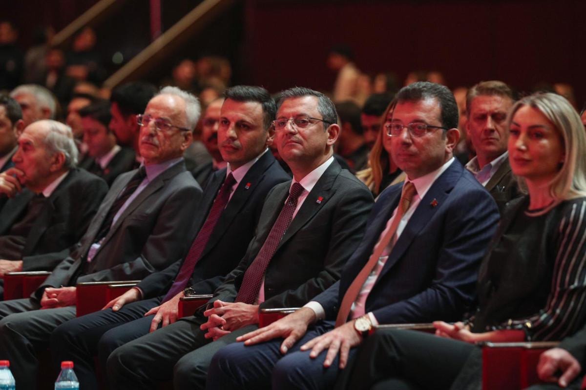 Gecede CHP Genel Başkanı Özgür Özel'in ve İstanbul Büyükşehir Belediye (İBB) Başkanı Ekrem İmamoğlu'nun ön saflarda yer aldığı görüldü.