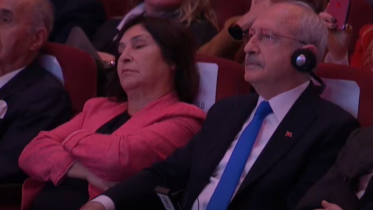 Amerikalı danışmanın yaptığı kimse tarafından anlaşılmayan konuşma uzadıkça uzayınca Kemal Kılıçdaroğlu'nun eşi Selvi Kılıçdaroğlu uyuyakaldı.
