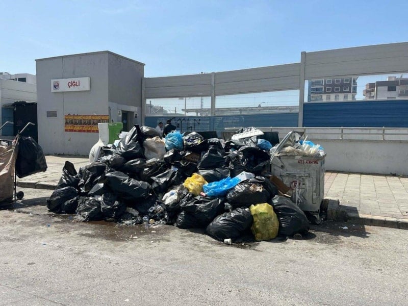 Çiğli'de belediye işçilerinin grevi günlerdir sürerken sokaklarda oluşan çöp yığınları ise vatandaşları isyan ettirdi.