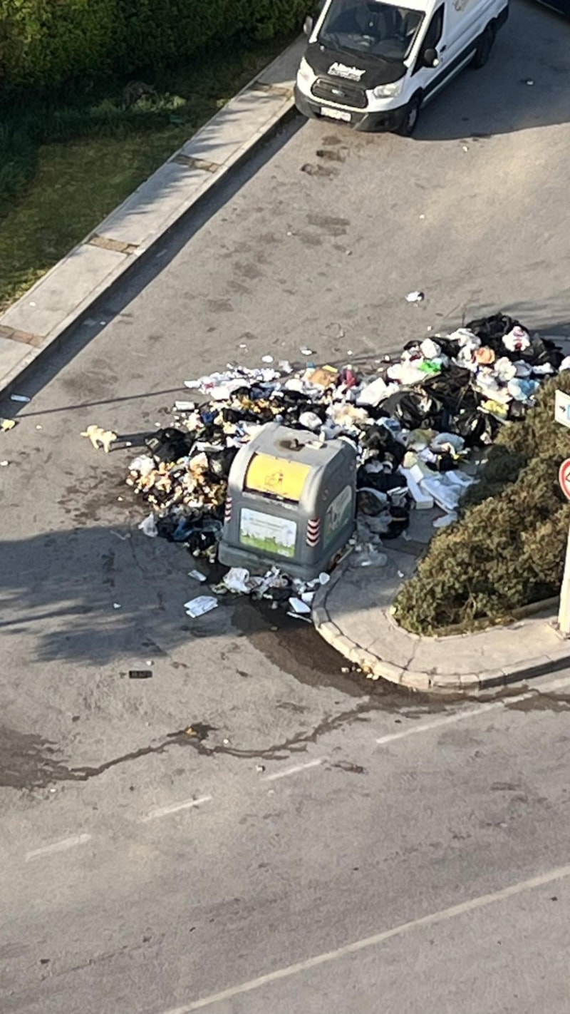 Çöpler, konteyneri aşarak kaldırım ve yollara taştı.