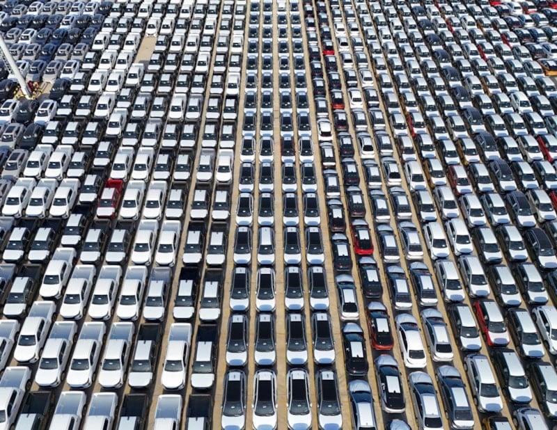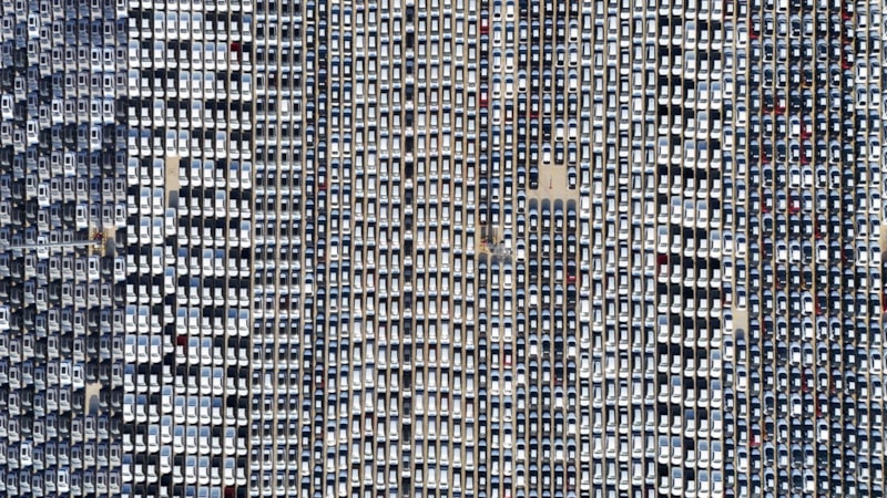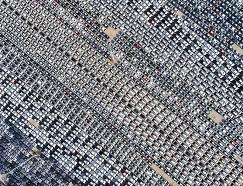 Limana indirilen binlerce sıfır kilometre araç, havadan görüntülendi.