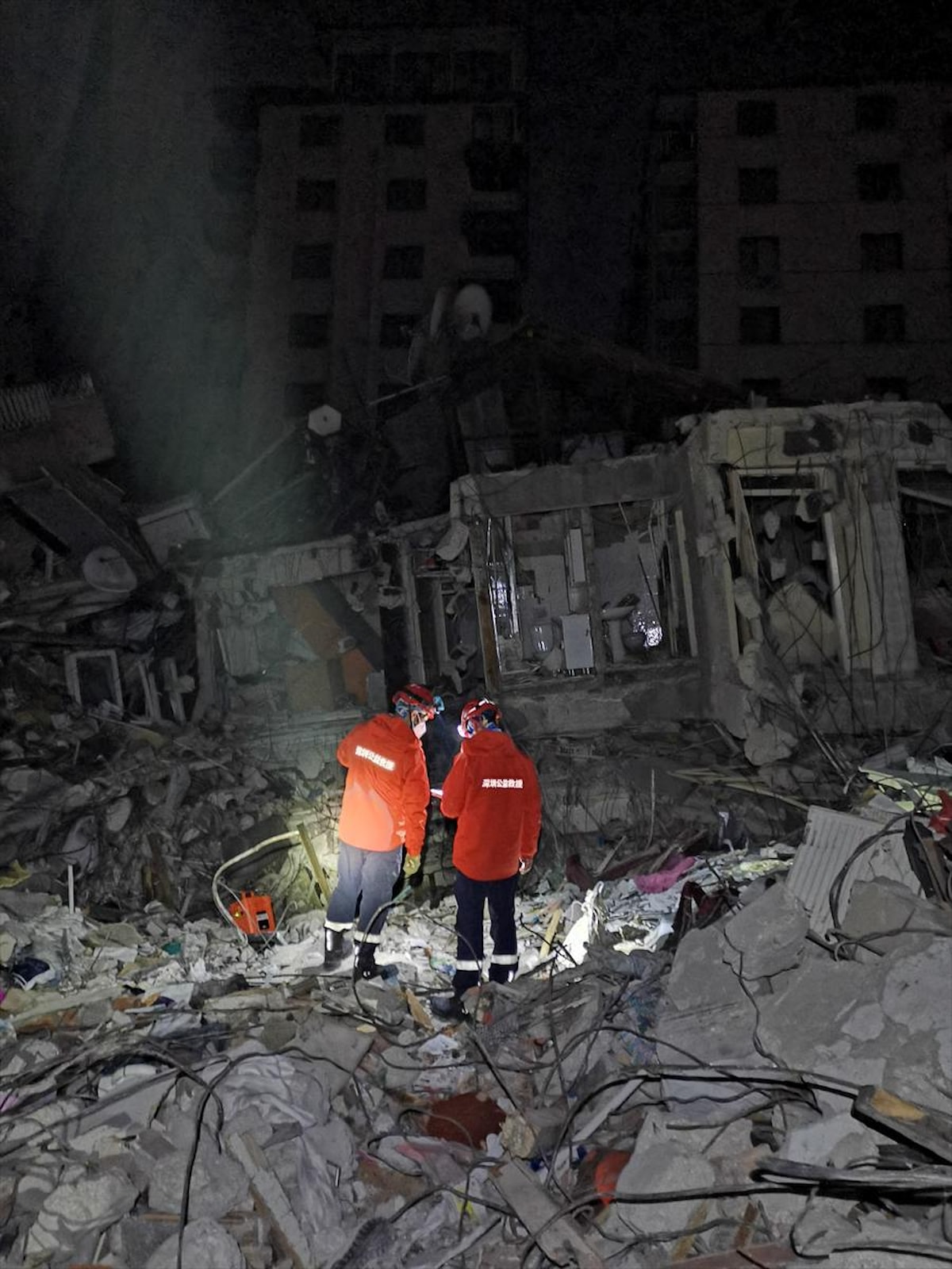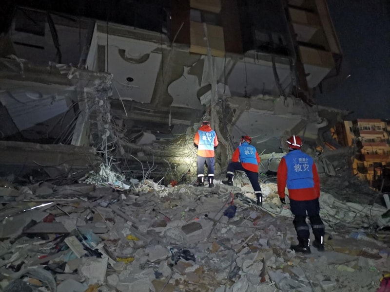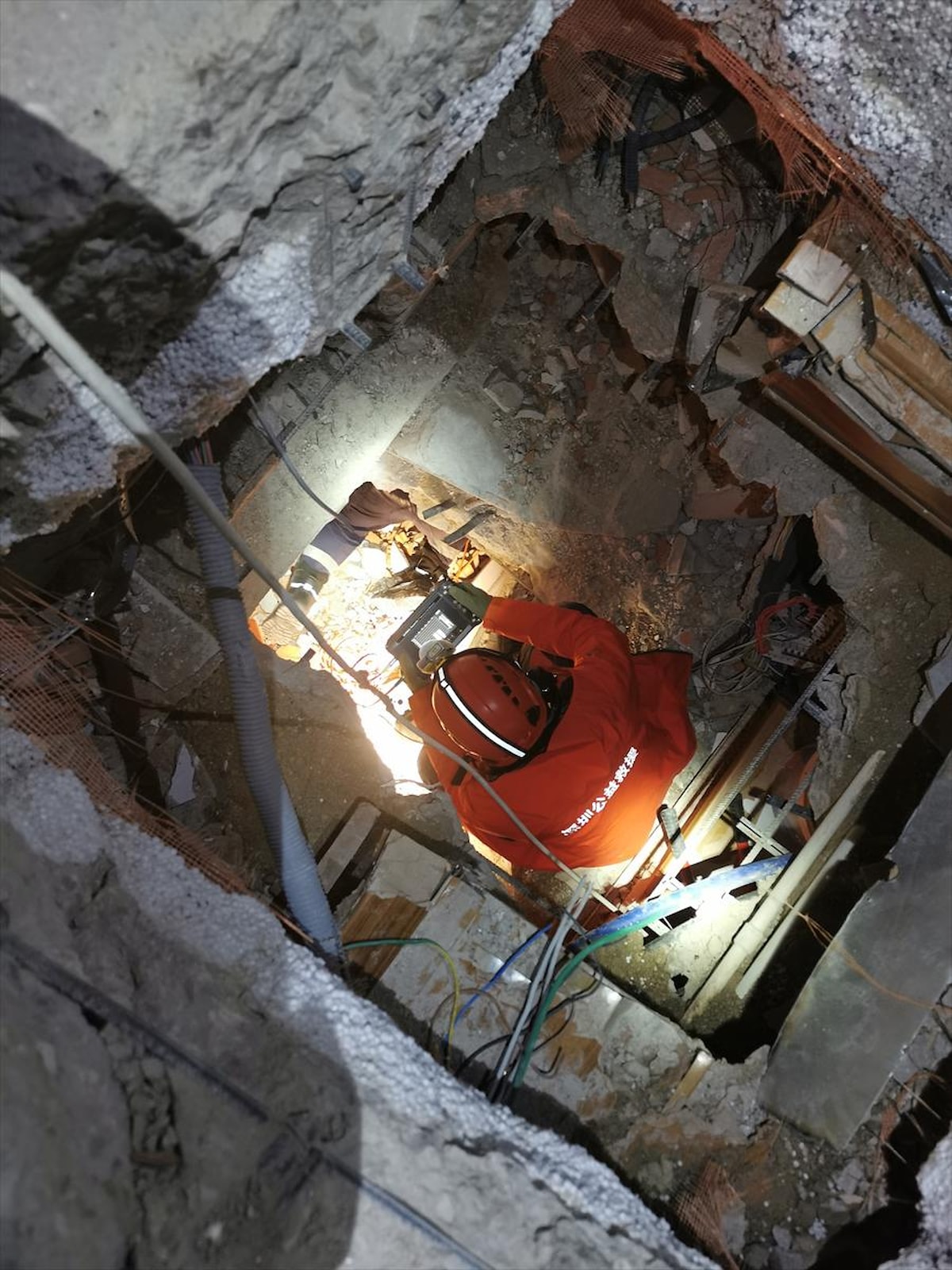 Çinli ekip, özel ekipmanlarıyla enkaz altında faaliyet gerçekleştirirken objektiflere yansıdı.