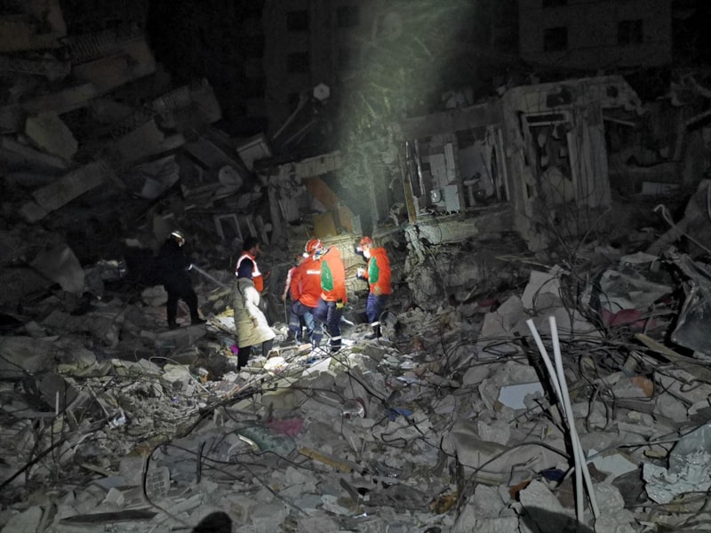 Çok sayıda binanın yıkıldığı kentte oluşan enkazda arama kurtarma çalışmaları devam ediyor.
