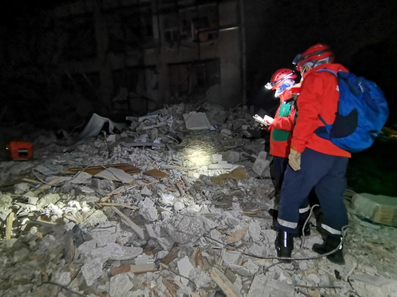 Ekip üyeleri, özel ekipmanlarıyla enkaz altında kurtarma çalışması yürütürken görüntülendi.