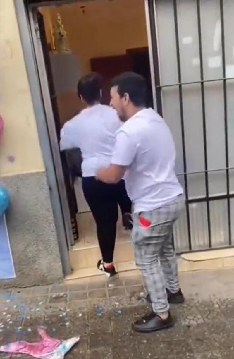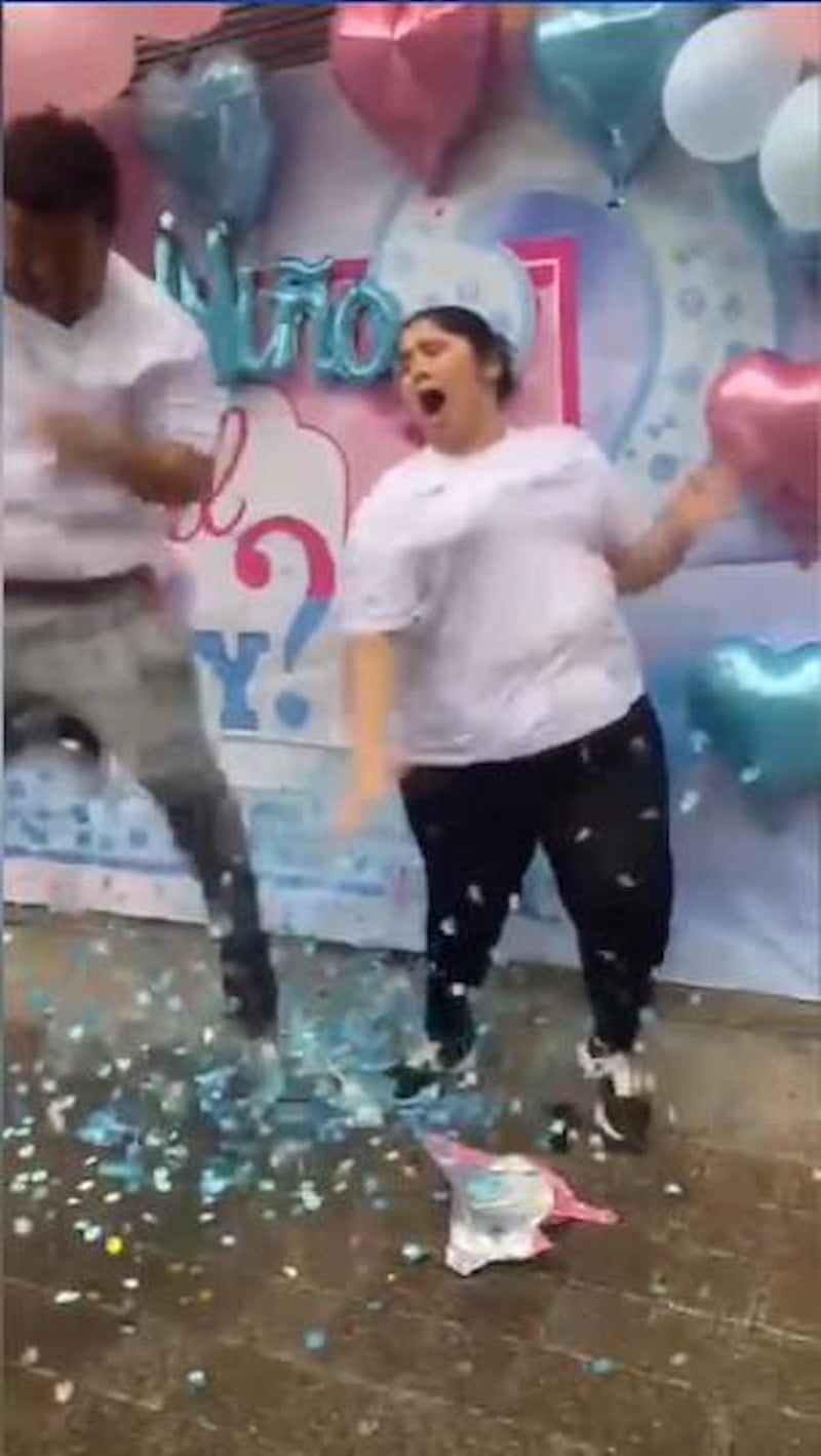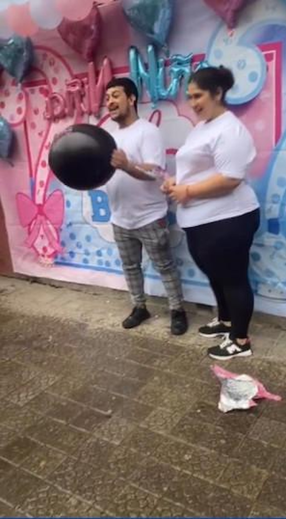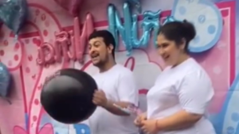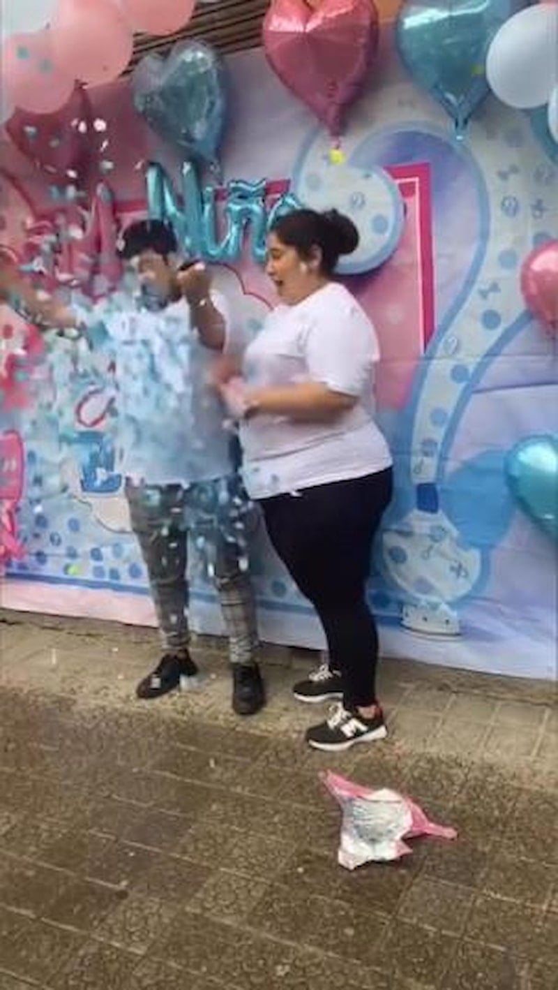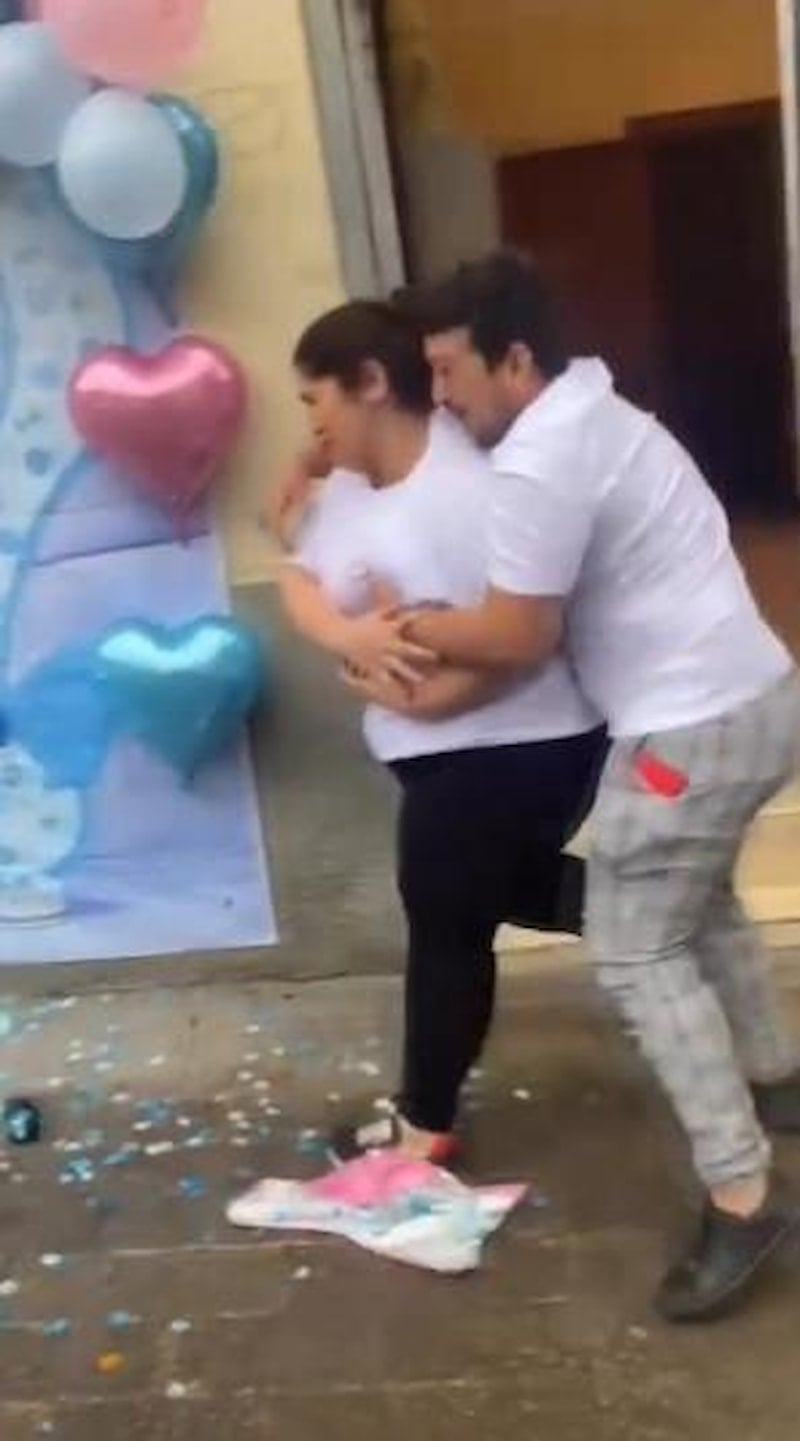 Balondan erkek bebeği temsil eden mavi rengin çıkmasıyla baba sevinçten çılgına dönerken annenin hüznü ise kameralara yansıdı.